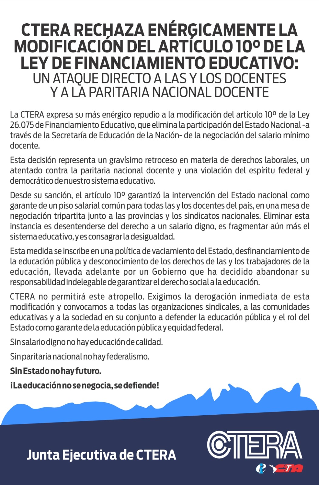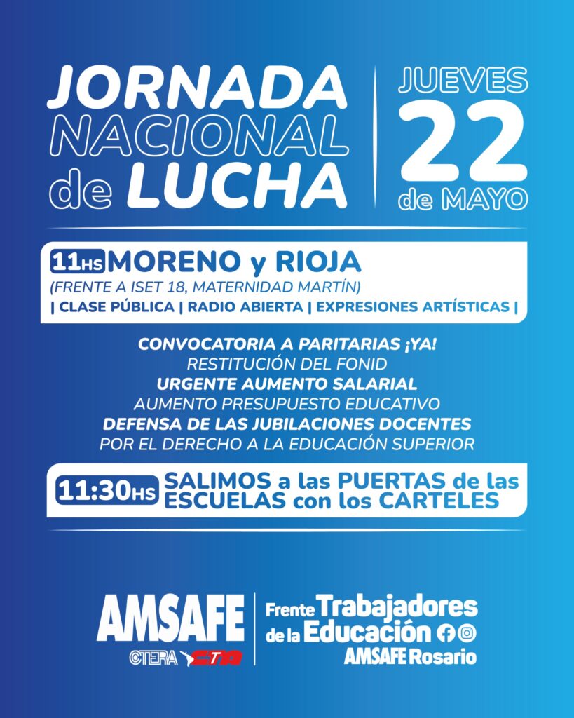 Información General CTERA PARA Y SE MOVILIZA Por Oscar Martino 22/05/2025 FacebookTwitterPinterestWhatsApp Es en respuesta al retiro del Estado Nacional de la paritaria nacional docente AMSAFE como entidad de base, realiza paro y movilización Artículo anteriorTEMAS DE INTERES GENERALArtículo siguienteTITULOS Más noticias ComentariosOscar Martino - 15/10/2025TEMAS DE INTERES GENERAL Oscar Martino Información General INFORMACIONES GENERALES Oscar Martino - 15/10/2025 Gremiales SINDICALES Oscar Martino - 15/10/2025 Entrevista ENTREVISTAMOS AL CANDIDATO AGUSTIN ROSSI Oscar Martino - 15/10/2025